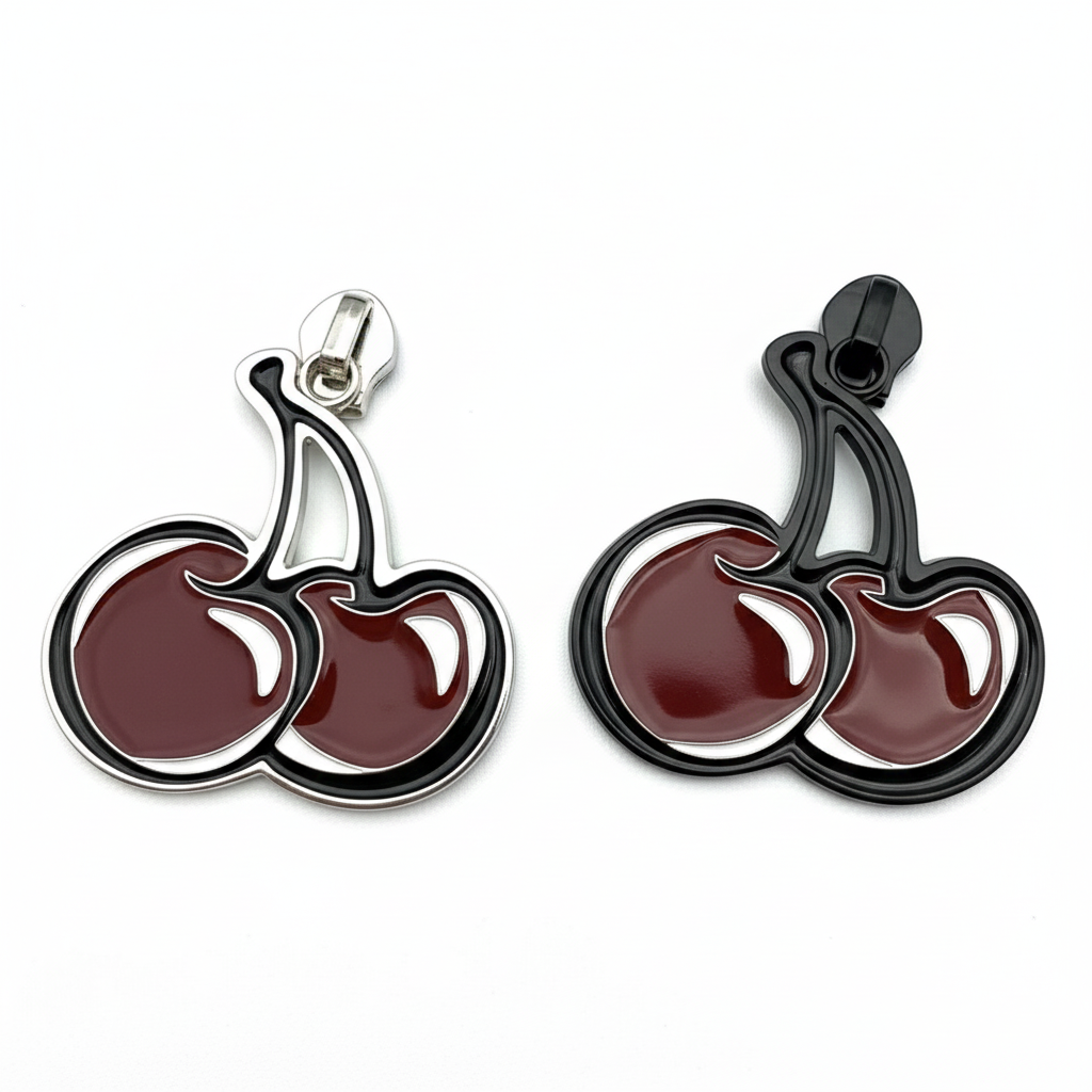 Size #5 pull for nylon coil zippersCherry design on one side