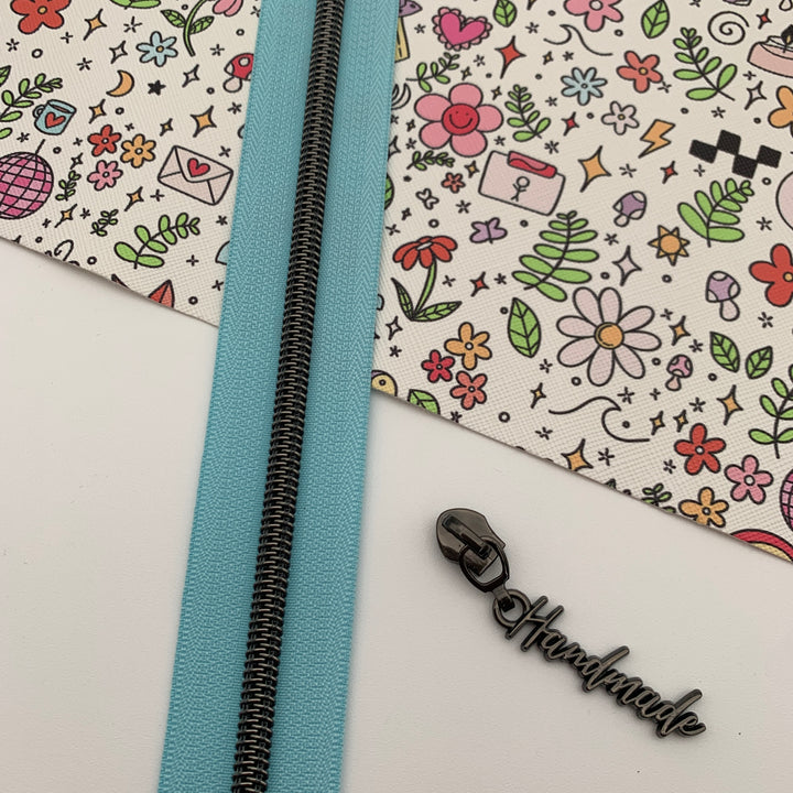 Aqua #5 Gunmetal zipper coil