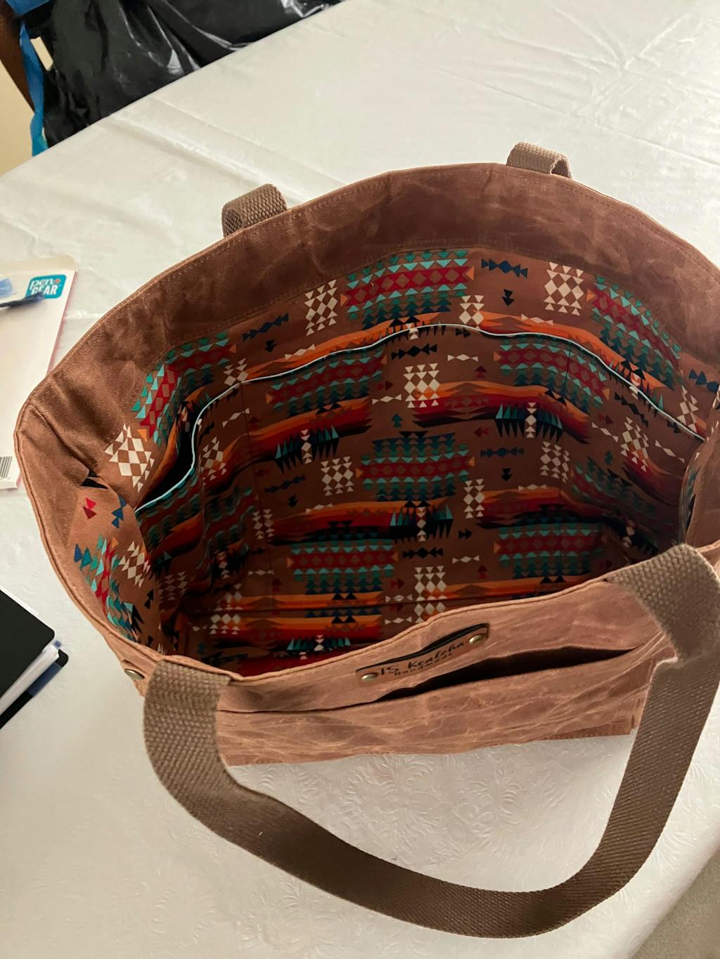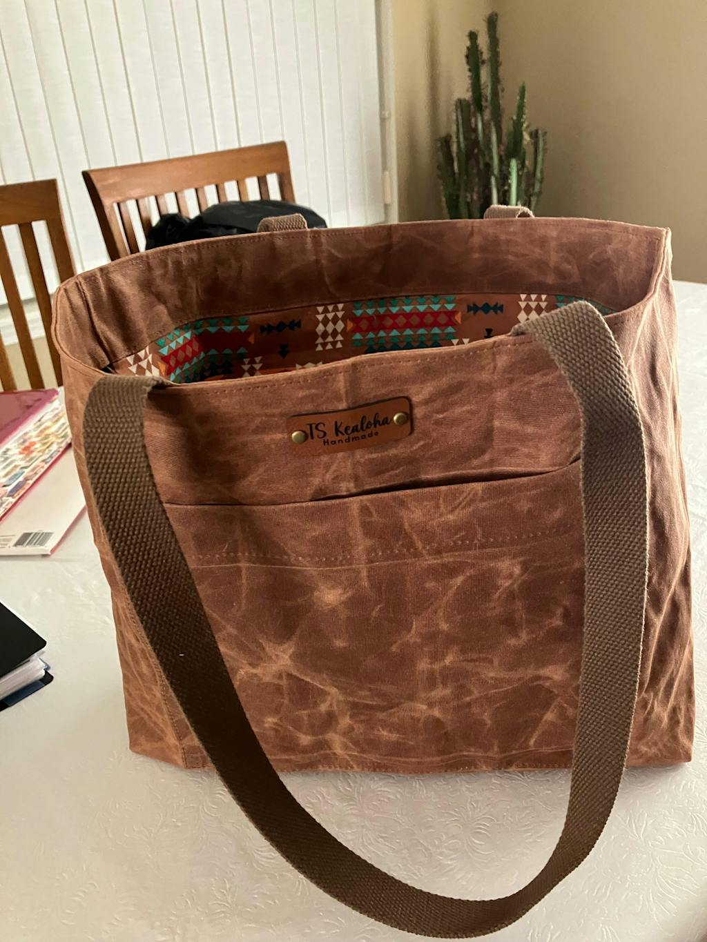 Teresa K. This is a beautiful color and good quality waxed canvas. My first time working with it. Made a great tote.
